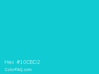 Hex #10cbd2 Color is a normal cyan color and the nearest color is Dark Turquoise #00ced1. Hex code #10cbd2 and RGB value is rgb(16,203,210). In RGB color space, this color is composed of 6% red, 80% green, 82% blue, In CMYK color space, this color is composed of 92% cyan, 3% magenta, 0% yellow , 18% black , In HSL color space, this color has a hue angle of 182° , 86% saturation and 44% lightness.