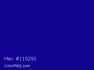 Hex #110291 Color is a dark indigo color and the nearest color is Ultramarine #120a8f. Hex code #110291 and RGB value is rgb(17,2,145). In RGB color space, this color is composed of 7% red, 1% green, 57% blue, In CMYK color space, this color is composed of 88% cyan, 99% magenta, 0% yellow , 43% black , In HSL color space, this color has a hue angle of 246° , 97% saturation and 29% lightness.