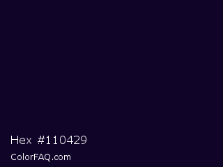 Hex #110429 Color is a almost black violet color and the nearest color is Black Rock #0d0332. Hex code #110429 and RGB value is rgb(17,4,41). In RGB color space, this color is composed of 7% red, 2% green, 16% blue, In CMYK color space, this color is composed of 59% cyan, 90% magenta, 0% yellow , 84% black , In HSL color space, this color has a hue angle of 261° , 82% saturation and 9% lightness.