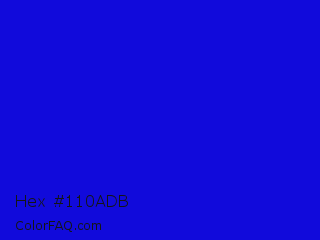 Hex #110adb Color is a normal indigo color and the nearest color is Medium Blue #0000cd. Hex code #110adb and RGB value is rgb(17,10,219). In RGB color space, this color is composed of 7% red, 4% green, 86% blue, In CMYK color space, this color is composed of 92% cyan, 95% magenta, 0% yellow , 14% black , In HSL color space, this color has a hue angle of 242° , 91% saturation and 45% lightness.