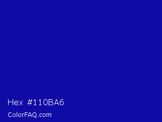 Hex #110ba6 Color is a normal indigo color and the nearest color is Zaffre #0014a8. Hex code #110ba6 and RGB value is rgb(17,11,166). In RGB color space, this color is composed of 7% red, 4% green, 65% blue, In CMYK color space, this color is composed of 90% cyan, 93% magenta, 0% yellow , 35% black , In HSL color space, this color has a hue angle of 242° , 88% saturation and 35% lightness.