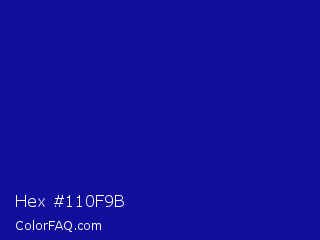 Hex #110f9b Color is a normal indigo color and the nearest color is Ultramarine #120a8f. Hex code #110f9b and RGB value is rgb(17,15,155). In RGB color space, this color is composed of 7% red, 6% green, 61% blue, In CMYK color space, this color is composed of 89% cyan, 90% magenta, 0% yellow , 39% black , In HSL color space, this color has a hue angle of 241° , 82% saturation and 33% lightness.