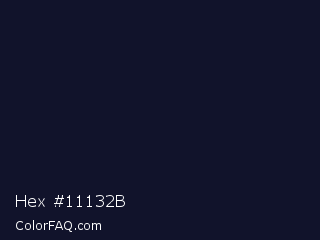 Hex #11132b Color is a very dark blue color and the nearest color is Mirage #161928. Hex code #11132b and RGB value is rgb(17,19,43). In RGB color space, this color is composed of 7% red, 7% green, 17% blue, In CMYK color space, this color is composed of 60% cyan, 56% magenta, 0% yellow , 83% black , In HSL color space, this color has a hue angle of 235° , 43% saturation and 12% lightness.