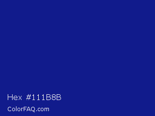 Hex #111b8b Color is a normal blue color and the nearest color is Indigo Dye #091f92. Hex code #111b8b and RGB value is rgb(17,27,139). In RGB color space, this color is composed of 7% red, 11% green, 55% blue, In CMYK color space, this color is composed of 88% cyan, 81% magenta, 0% yellow , 45% black , In HSL color space, this color has a hue angle of 235° , 78% saturation and 31% lightness.