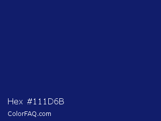 Hex #111d6b Color is a dark blue color and the nearest color is Lucky Point #1a1a68. Hex code #111d6b and RGB value is rgb(17,29,107). In RGB color space, this color is composed of 7% red, 11% green, 42% blue, In CMYK color space, this color is composed of 84% cyan, 73% magenta, 0% yellow , 58% black , In HSL color space, this color has a hue angle of 232° , 73% saturation and 24% lightness.