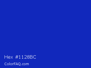 Hex #1128bc Color is a normal blue color and the nearest color is Persian Blue #1c39bb. Hex code #1128bc and RGB value is rgb(17,40,188). In RGB color space, this color is composed of 7% red, 16% green, 74% blue, In CMYK color space, this color is composed of 91% cyan, 79% magenta, 0% yellow , 26% black , In HSL color space, this color has a hue angle of 232° , 83% saturation and 40% lightness.