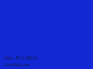 Hex #1128d4 Color is a normal blue color and the nearest color is Persian Blue #1c39bb. Hex code #1128d4 and RGB value is rgb(17,40,212). In RGB color space, this color is composed of 7% red, 16% green, 83% blue, In CMYK color space, this color is composed of 92% cyan, 81% magenta, 0% yellow , 17% black , In HSL color space, this color has a hue angle of 233° , 85% saturation and 45% lightness.