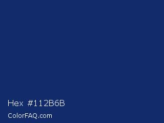 Hex #112b6b Color is a dark blue color and the nearest color is Deep Sapphire #082567. Hex code #112b6b and RGB value is rgb(17,43,107). In RGB color space, this color is composed of 7% red, 17% green, 42% blue, In CMYK color space, this color is composed of 84% cyan, 60% magenta, 0% yellow , 58% black , In HSL color space, this color has a hue angle of 223° , 73% saturation and 24% lightness.