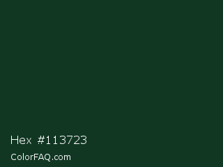 Hex #113723 Color is a very dark green color and the nearest color is Phthalo Green #123524. Hex code #113723 and RGB value is rgb(17,55,35). In RGB color space, this color is composed of 7% red, 22% green, 14% blue, In CMYK color space, this color is composed of 69% cyan, 0% magenta, 36% yellow , 78% black , In HSL color space, this color has a hue angle of 148° , 53% saturation and 14% lightness.