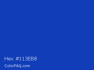 Hex #113eb8 Color is a normal blue color and the nearest color is Persian Blue #1c39bb. Hex code #113eb8 and RGB value is rgb(17,62,184). In RGB color space, this color is composed of 7% red, 24% green, 72% blue, In CMYK color space, this color is composed of 91% cyan, 66% magenta, 0% yellow , 28% black , In HSL color space, this color has a hue angle of 224° , 83% saturation and 39% lightness.