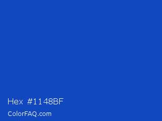 Hex #1148bf Color is a normal blue color and the nearest color is Sapphire #0f52ba. Hex code #1148bf and RGB value is rgb(17,72,191). In RGB color space, this color is composed of 7% red, 28% green, 75% blue, In CMYK color space, this color is composed of 91% cyan, 62% magenta, 0% yellow , 25% black , In HSL color space, this color has a hue angle of 221° , 84% saturation and 41% lightness.