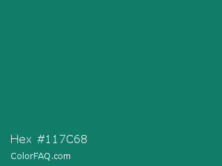 Hex #117c68 Color is a dark cyan color and the nearest color is Deep Green Cyan Turquoise #0e7c61. Hex code #117c68 and RGB value is rgb(17,124,104). In RGB color space, this color is composed of 7% red, 49% green, 41% blue, In CMYK color space, this color is composed of 86% cyan, 0% magenta, 16% yellow , 51% black , In HSL color space, this color has a hue angle of 169° , 76% saturation and 28% lightness.