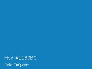 Hex #1180bc Color is a normal blue color and the nearest color is Cyan Cornflower Blue #188bc2. Hex code #1180bc and RGB value is rgb(17,128,188). In RGB color space, this color is composed of 7% red, 50% green, 74% blue, In CMYK color space, this color is composed of 91% cyan, 32% magenta, 0% yellow , 26% black , In HSL color space, this color has a hue angle of 201° , 83% saturation and 40% lightness.