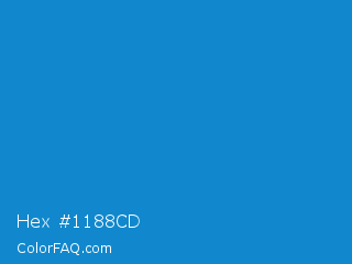 Hex #1188cd Color is a normal blue color and the nearest color is Cyan Cornflower Blue #188bc2. Hex code #1188cd and RGB value is rgb(17,136,205). In RGB color space, this color is composed of 7% red, 53% green, 80% blue, In CMYK color space, this color is composed of 92% cyan, 34% magenta, 0% yellow , 20% black , In HSL color space, this color has a hue angle of 202° , 85% saturation and 44% lightness.