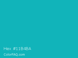 Hex #11b4ba Color is a normal cyan color and the nearest color is Tiffany Blue #0abab5. Hex code #11b4ba and RGB value is rgb(17,180,186). In RGB color space, this color is composed of 7% red, 71% green, 73% blue, In CMYK color space, this color is composed of 91% cyan, 3% magenta, 0% yellow , 27% black , In HSL color space, this color has a hue angle of 182° , 83% saturation and 40% lightness.