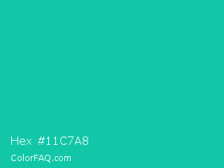 Hex #11c7a8 Color is a normal cyan color and the nearest color is Amazonite #00c4b0. Hex code #11c7a8 and RGB value is rgb(17,199,168). In RGB color space, this color is composed of 7% red, 78% green, 66% blue, In CMYK color space, this color is composed of 91% cyan, 0% magenta, 16% yellow , 22% black , In HSL color space, this color has a hue angle of 170° , 84% saturation and 42% lightness.