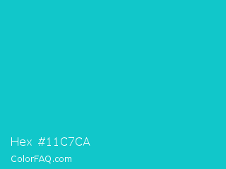 Hex #11c7ca Color is a normal cyan color and the nearest color is Java #1fc2c2. Hex code #11c7ca and RGB value is rgb(17,199,202). In RGB color space, this color is composed of 7% red, 78% green, 79% blue, In CMYK color space, this color is composed of 92% cyan, 1% magenta, 0% yellow , 21% black , In HSL color space, this color has a hue angle of 181° , 84% saturation and 43% lightness.