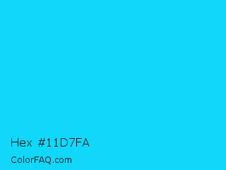 Hex #11d7fa Color is a normal cyan color and the nearest color is Vivid Sky Blue #00ccff. Hex code #11d7fa and RGB value is rgb(17,215,250). In RGB color space, this color is composed of 7% red, 84% green, 98% blue, In CMYK color space, this color is composed of 93% cyan, 14% magenta, 0% yellow , 2% black , In HSL color space, this color has a hue angle of 189° , 96% saturation and 52% lightness.