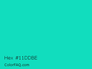 Hex #11ddbe Color is a normal cyan color and the nearest color is Robins Egg Blue #00cccc. Hex code #11ddbe and RGB value is rgb(17,221,190). In RGB color space, this color is composed of 7% red, 87% green, 75% blue, In CMYK color space, this color is composed of 92% cyan, 0% magenta, 14% yellow , 13% black , In HSL color space, this color has a hue angle of 171° , 86% saturation and 47% lightness.