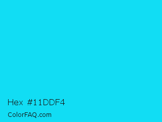 Hex #11ddf4 Color is a normal cyan color and the nearest color is Loeen #15f2fd. Hex code #11ddf4 and RGB value is rgb(17,221,244). In RGB color space, this color is composed of 7% red, 87% green, 96% blue, In CMYK color space, this color is composed of 93% cyan, 9% magenta, 0% yellow , 4% black , In HSL color space, this color has a hue angle of 186° , 91% saturation and 51% lightness.