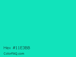 Hex #11e3bb Color is a normal cyan color and the nearest color is Robins Egg Blue #00cccc. Hex code #11e3bb and RGB value is rgb(17,227,187). In RGB color space, this color is composed of 7% red, 89% green, 73% blue, In CMYK color space, this color is composed of 93% cyan, 0% magenta, 18% yellow , 11% black , In HSL color space, this color has a hue angle of 169° , 86% saturation and 48% lightness.