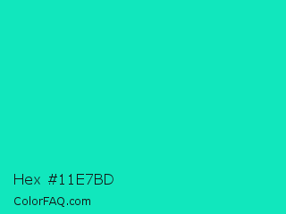Hex #11e7bd Color is a normal cyan color and the nearest color is Bright Turquoise #08e8de. Hex code #11e7bd and RGB value is rgb(17,231,189). In RGB color space, this color is composed of 7% red, 91% green, 74% blue, In CMYK color space, this color is composed of 93% cyan, 0% magenta, 18% yellow , 9% black , In HSL color space, this color has a hue angle of 168° , 86% saturation and 49% lightness.