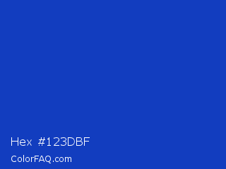 Hex #123dbf Color is a normal blue color and the nearest color is Persian Blue #1c39bb. Hex code #123dbf and RGB value is rgb(18,61,191). In RGB color space, this color is composed of 7% red, 24% green, 75% blue, In CMYK color space, this color is composed of 91% cyan, 68% magenta, 0% yellow , 25% black , In HSL color space, this color has a hue angle of 225° , 83% saturation and 41% lightness.