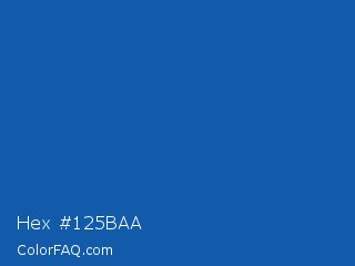 Hex #125baa Color is a normal blue color and the nearest color is Fun Blue #1959a8. Hex code #125baa and RGB value is rgb(18,91,170). In RGB color space, this color is composed of 7% red, 36% green, 67% blue, In CMYK color space, this color is composed of 89% cyan, 46% magenta, 0% yellow , 33% black , In HSL color space, this color has a hue angle of 211° , 81% saturation and 37% lightness.