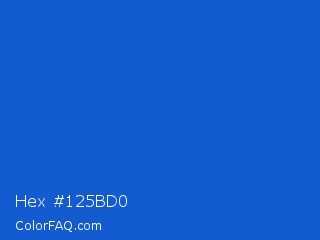 Hex #125bd0 Color is a normal blue color and the nearest color is Denim #1560bd. Hex code #125bd0 and RGB value is rgb(18,91,208). In RGB color space, this color is composed of 7% red, 36% green, 82% blue, In CMYK color space, this color is composed of 91% cyan, 56% magenta, 0% yellow , 18% black , In HSL color space, this color has a hue angle of 217° , 84% saturation and 44% lightness.