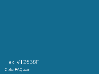 Hex #126b8f Color is a normal blue color and the nearest color is Matisse #1b659d. Hex code #126b8f and RGB value is rgb(18,107,143). In RGB color space, this color is composed of 7% red, 42% green, 56% blue, In CMYK color space, this color is composed of 87% cyan, 25% magenta, 0% yellow , 44% black , In HSL color space, this color has a hue angle of 197° , 78% saturation and 32% lightness.