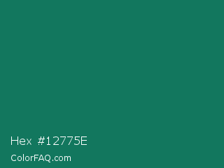 Hex #12775e Color is a dark cyan color and the nearest color is Deep Green Cyan Turquoise #0e7c61. Hex code #12775e and RGB value is rgb(18,119,94). In RGB color space, this color is composed of 7% red, 47% green, 37% blue, In CMYK color space, this color is composed of 85% cyan, 0% magenta, 21% yellow , 53% black , In HSL color space, this color has a hue angle of 165° , 74% saturation and 27% lightness.