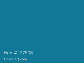 Hex #127898 Color is a normal blue color and the nearest color is Metallic Seaweed #0a7e8c. Hex code #127898 and RGB value is rgb(18,120,152). In RGB color space, this color is composed of 7% red, 47% green, 60% blue, In CMYK color space, this color is composed of 88% cyan, 21% magenta, 0% yellow , 40% black , In HSL color space, this color has a hue angle of 194° , 79% saturation and 33% lightness.