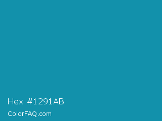 Hex #1291ab Color is a normal cyan color and the nearest color is Eastern Blue #1e9ab0. Hex code #1291ab and RGB value is rgb(18,145,171). In RGB color space, this color is composed of 7% red, 57% green, 67% blue, In CMYK color space, this color is composed of 89% cyan, 15% magenta, 0% yellow , 33% black , In HSL color space, this color has a hue angle of 190° , 81% saturation and 37% lightness.