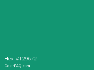 Hex #129672 Color is a normal cyan color and the nearest color is Gossamer #069b81. Hex code #129672 and RGB value is rgb(18,150,114). In RGB color space, this color is composed of 7% red, 59% green, 45% blue, In CMYK color space, this color is composed of 88% cyan, 0% magenta, 24% yellow , 41% black , In HSL color space, this color has a hue angle of 164° , 79% saturation and 33% lightness.