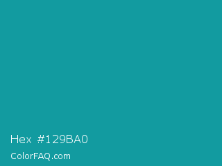 Hex #129ba0 Color is a normal cyan color and the nearest color is Eastern Blue #1e9ab0. Hex code #129ba0 and RGB value is rgb(18,155,160). In RGB color space, this color is composed of 7% red, 61% green, 63% blue, In CMYK color space, this color is composed of 89% cyan, 3% magenta, 0% yellow , 37% black , In HSL color space, this color has a hue angle of 182° , 80% saturation and 35% lightness.