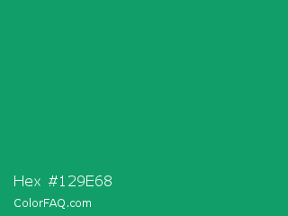 Hex #129e68 Color is a normal green color and the nearest color is Green Haze #01a368. Hex code #129e68 and RGB value is rgb(18,158,104). In RGB color space, this color is composed of 7% red, 62% green, 41% blue, In CMYK color space, this color is composed of 89% cyan, 0% magenta, 34% yellow , 38% black , In HSL color space, this color has a hue angle of 157° , 80% saturation and 35% lightness.