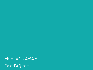 Hex #12abab Color is a normal cyan color and the nearest color is Light Sea Green #20b2aa. Hex code #12abab and RGB value is rgb(18,171,171). In RGB color space, this color is composed of 7% red, 67% green, 67% blue, In CMYK color space, this color is composed of 89% cyan, 0% magenta, 0% yellow , 33% black , In HSL color space, this color has a hue angle of 180° , 81% saturation and 37% lightness.