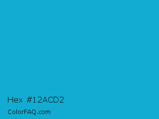 Hex #12acd2 Color is a normal cyan color and the nearest color is Battery Charged Blue #1dacd6. Hex code #12acd2 and RGB value is rgb(18,172,210). In RGB color space, this color is composed of 7% red, 67% green, 82% blue, In CMYK color space, this color is composed of 91% cyan, 18% magenta, 0% yellow , 18% black , In HSL color space, this color has a hue angle of 192° , 84% saturation and 45% lightness.