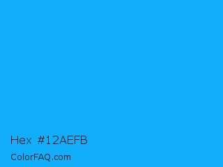 Hex #12aefb Color is a normal blue color and the nearest color is Spiro Disco Ball #0fc0fc. Hex code #12aefb and RGB value is rgb(18,174,251). In RGB color space, this color is composed of 7% red, 68% green, 98% blue, In CMYK color space, this color is composed of 93% cyan, 31% magenta, 0% yellow , 2% black , In HSL color space, this color has a hue angle of 200° , 97% saturation and 53% lightness.