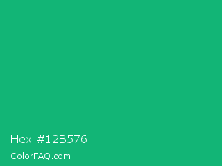 Hex #12b576 Color is a normal green color and the nearest color is Green Crayola #1cac78. Hex code #12b576 and RGB value is rgb(18,181,118). In RGB color space, this color is composed of 7% red, 71% green, 46% blue, In CMYK color space, this color is composed of 90% cyan, 0% magenta, 35% yellow , 29% black , In HSL color space, this color has a hue angle of 157° , 82% saturation and 39% lightness.