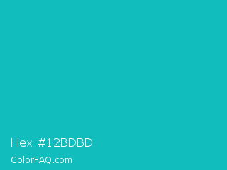 Hex #12bdbd Color is a normal cyan color and the nearest color is Tiffany Blue #0abab5. Hex code #12bdbd and RGB value is rgb(18,189,189). In RGB color space, this color is composed of 7% red, 74% green, 74% blue, In CMYK color space, this color is composed of 90% cyan, 0% magenta, 0% yellow , 26% black , In HSL color space, this color has a hue angle of 180° , 83% saturation and 41% lightness.