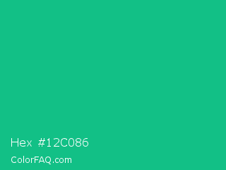 Hex #12c086 Color is a normal green color and the nearest color is Mountain Meadow Crayola #1ab385. Hex code #12c086 and RGB value is rgb(18,192,134). In RGB color space, this color is composed of 7% red, 75% green, 53% blue, In CMYK color space, this color is composed of 91% cyan, 0% magenta, 30% yellow , 25% black , In HSL color space, this color has a hue angle of 160° , 83% saturation and 41% lightness.