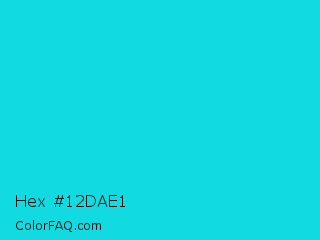Hex #12dae1 Color is a normal cyan color and the nearest color is Bright Turquoise #08e8de. Hex code #12dae1 and RGB value is rgb(18,218,225). In RGB color space, this color is composed of 7% red, 85% green, 88% blue, In CMYK color space, this color is composed of 92% cyan, 3% magenta, 0% yellow , 12% black , In HSL color space, this color has a hue angle of 182° , 85% saturation and 48% lightness.