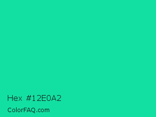 Hex #12e0a2 Color is a normal green color and the nearest color is Caribbean Green #00cc99. Hex code #12e0a2 and RGB value is rgb(18,224,162). In RGB color space, this color is composed of 7% red, 88% green, 64% blue, In CMYK color space, this color is composed of 92% cyan, 0% magenta, 28% yellow , 12% black , In HSL color space, this color has a hue angle of 162° , 85% saturation and 47% lightness.