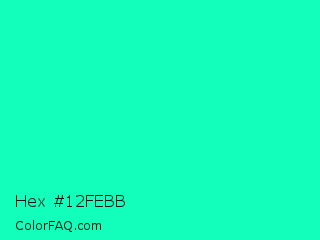 Hex #12febb Color is a normal green color and the nearest color is Medium Spring Green #00fa9a. Hex code #12febb and RGB value is rgb(18,254,187). In RGB color space, this color is composed of 7% red, 100% green, 73% blue, In CMYK color space, this color is composed of 93% cyan, 0% magenta, 26% yellow , 0% black , In HSL color space, this color has a hue angle of 163° , 99% saturation and 53% lightness.