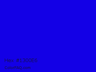 Hex #1300e6 Color is a normal indigo color and the nearest color is Bluebonnet #1c1cf0. Hex code #1300e6 and RGB value is rgb(19,0,230). In RGB color space, this color is composed of 7% red, 0% green, 90% blue, In CMYK color space, this color is composed of 92% cyan, 100% magenta, 0% yellow , 10% black , In HSL color space, this color has a hue angle of 245° , 100% saturation and 45% lightness.