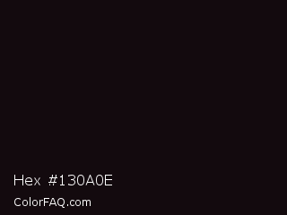 Hex #130a0e Color is a almost black rose color and the nearest color is Smoky Black #100c08. Hex code #130a0e and RGB value is rgb(19,10,14). In RGB color space, this color is composed of 7% red, 4% green, 5% blue, In CMYK color space, this color is composed of 0% cyan, 47% magenta, 26% yellow , 93% black , In HSL color space, this color has a hue angle of 333° , 31% saturation and 6% lightness.