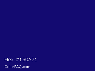 Hex #130a71 Color is a dark indigo color and the nearest color is Arapawa #110c6c. Hex code #130a71 and RGB value is rgb(19,10,113). In RGB color space, this color is composed of 7% red, 4% green, 44% blue, In CMYK color space, this color is composed of 83% cyan, 91% magenta, 0% yellow , 56% black , In HSL color space, this color has a hue angle of 245° , 84% saturation and 24% lightness.