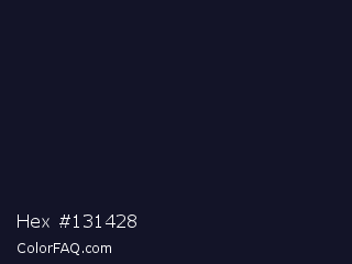 Hex #131428 Color is a very dark blue color and the nearest color is Mirage #161928. Hex code #131428 and RGB value is rgb(19,20,40). In RGB color space, this color is composed of 7% red, 8% green, 16% blue, In CMYK color space, this color is composed of 53% cyan, 50% magenta, 0% yellow , 84% black , In HSL color space, this color has a hue angle of 237° , 36% saturation and 12% lightness.