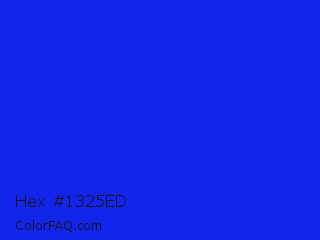 Hex #1325ed Color is a normal blue color and the nearest color is Bluebonnet #1c1cf0. Hex code #1325ed and RGB value is rgb(19,37,237). In RGB color space, this color is composed of 7% red, 15% green, 93% blue, In CMYK color space, this color is composed of 92% cyan, 84% magenta, 0% yellow , 7% black , In HSL color space, this color has a hue angle of 235° , 86% saturation and 50% lightness.